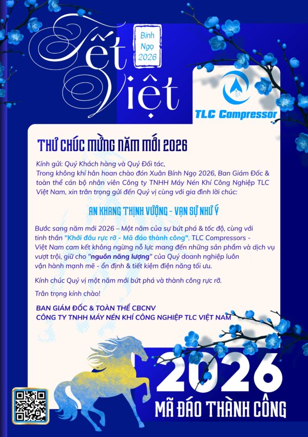 Cảm ơn bạn đã liên hệ Công ty TNHH máy nén khí công nghiệp TLC Việt Nam. TLC Compressor lấy sự hài lòng của khách hàng làm mục tiêu, chúng tôi là đơn vị tư vấn – cung cấp các giải pháp hàng đầu về tiết kiệm điện cho hệ thống máy nén khí.